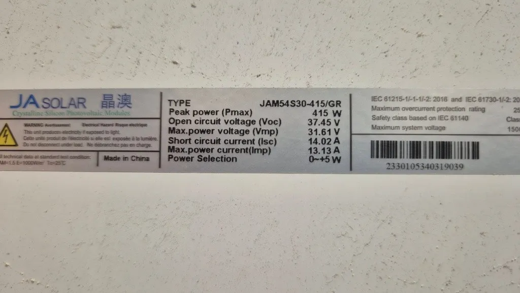 25287. 9ST SOLCELLER JASOLAR 415W