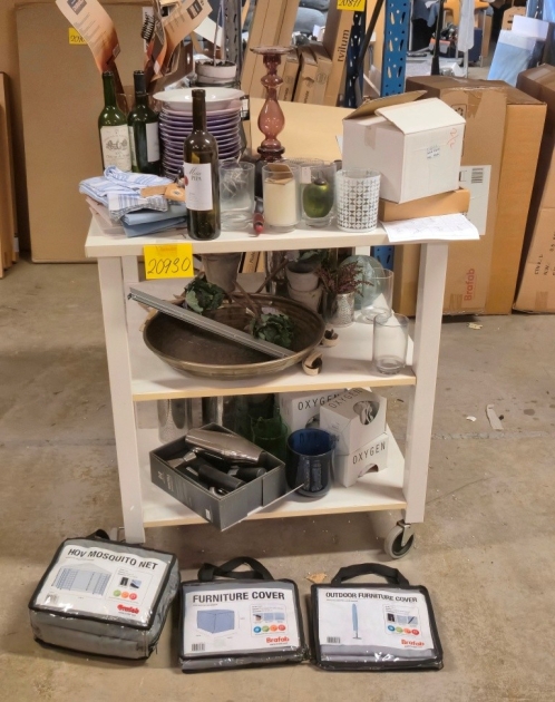 20930. BORD PÅ HJUL MED INNEHÅLL