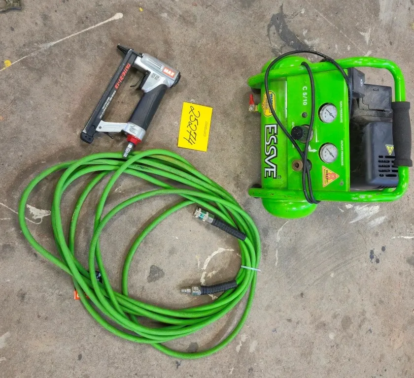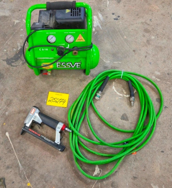 25274. BYGGKOMPRESSOR ESSVE + KLAMMERPISTOL MAX