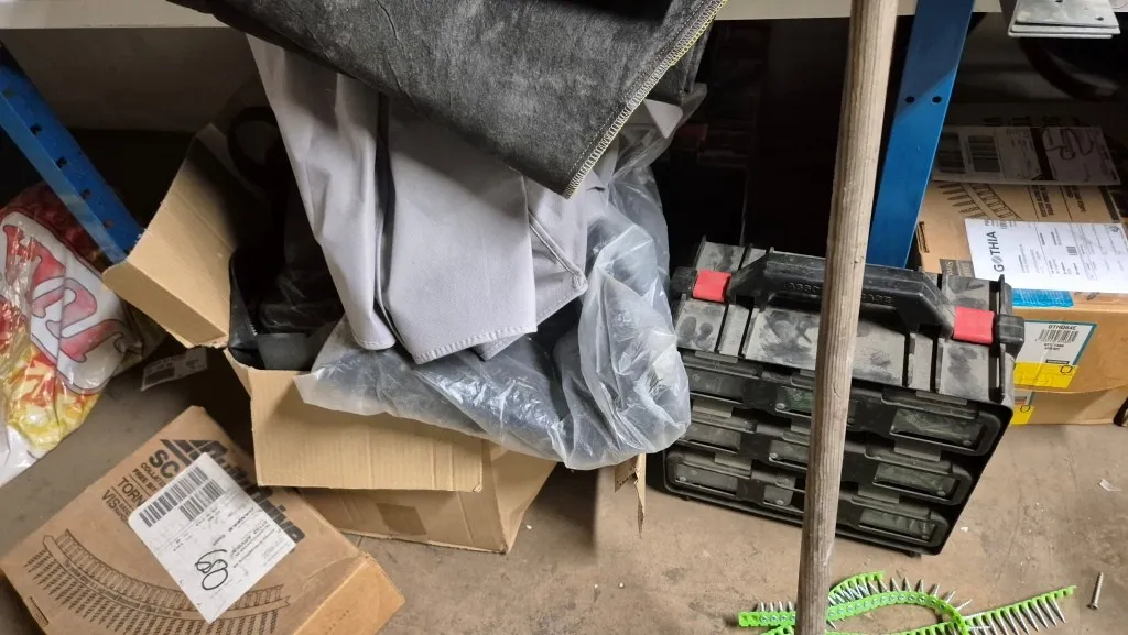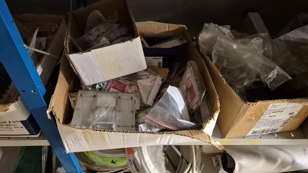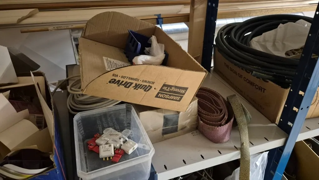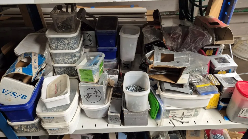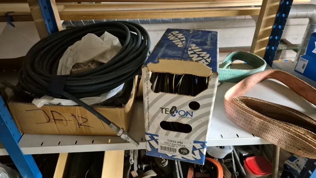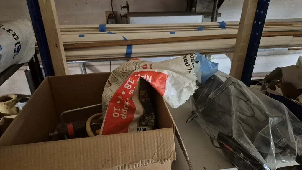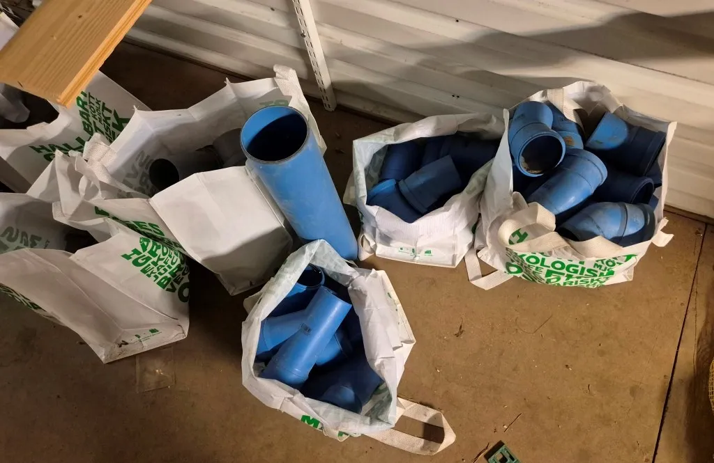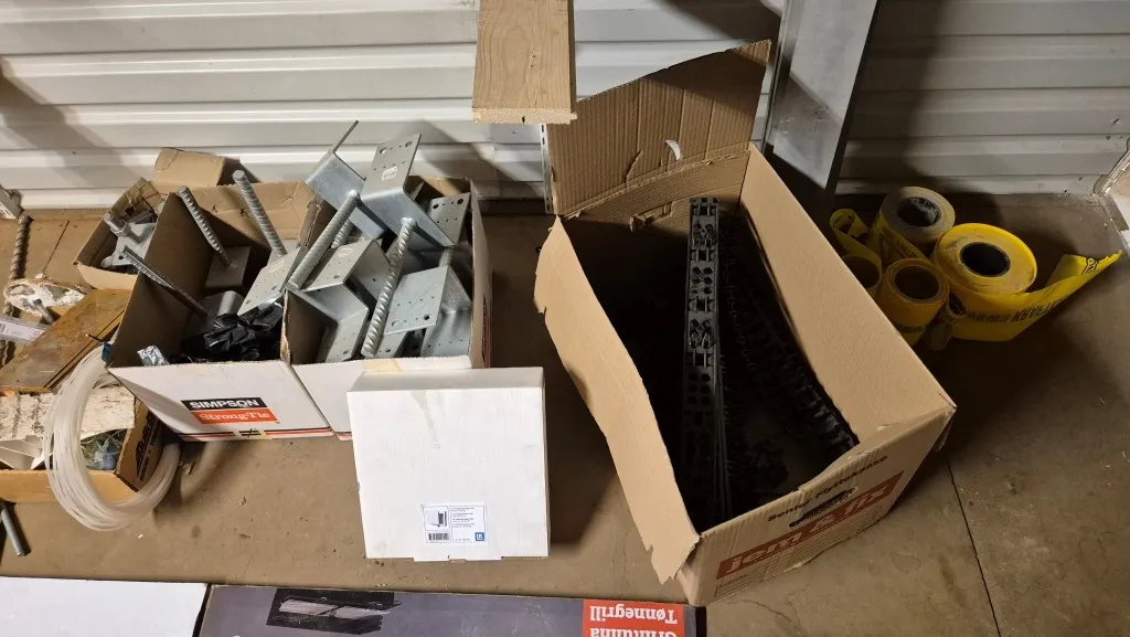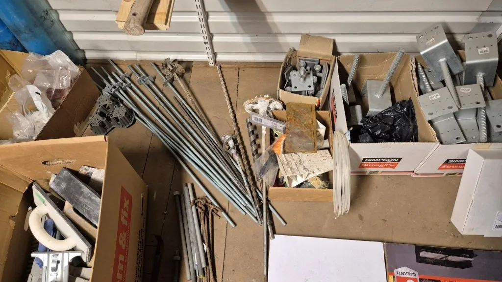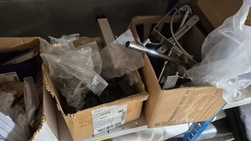 Byggmaterial, skruv, ventilationsdelar, avloppsdelar, el-material med mera.