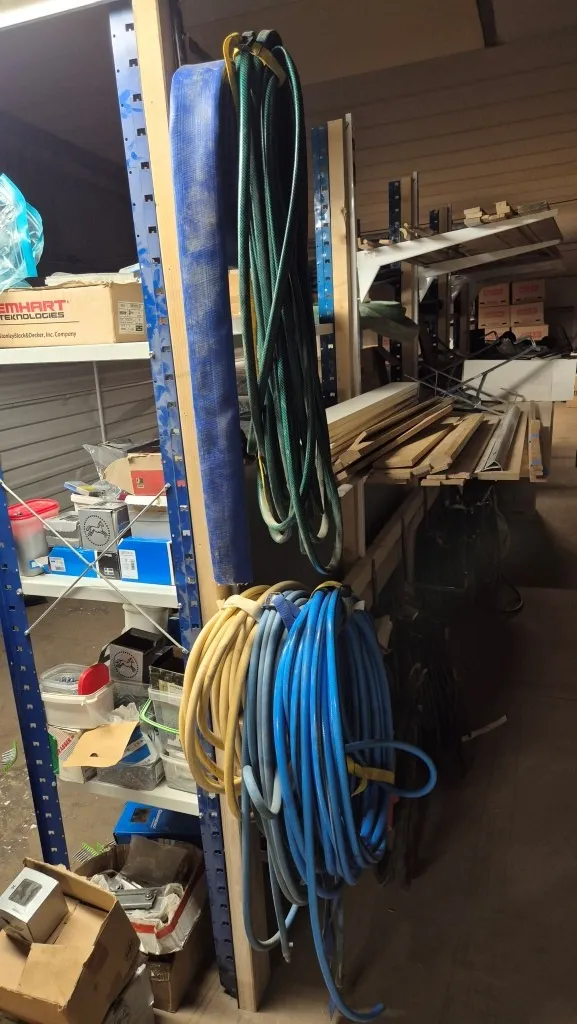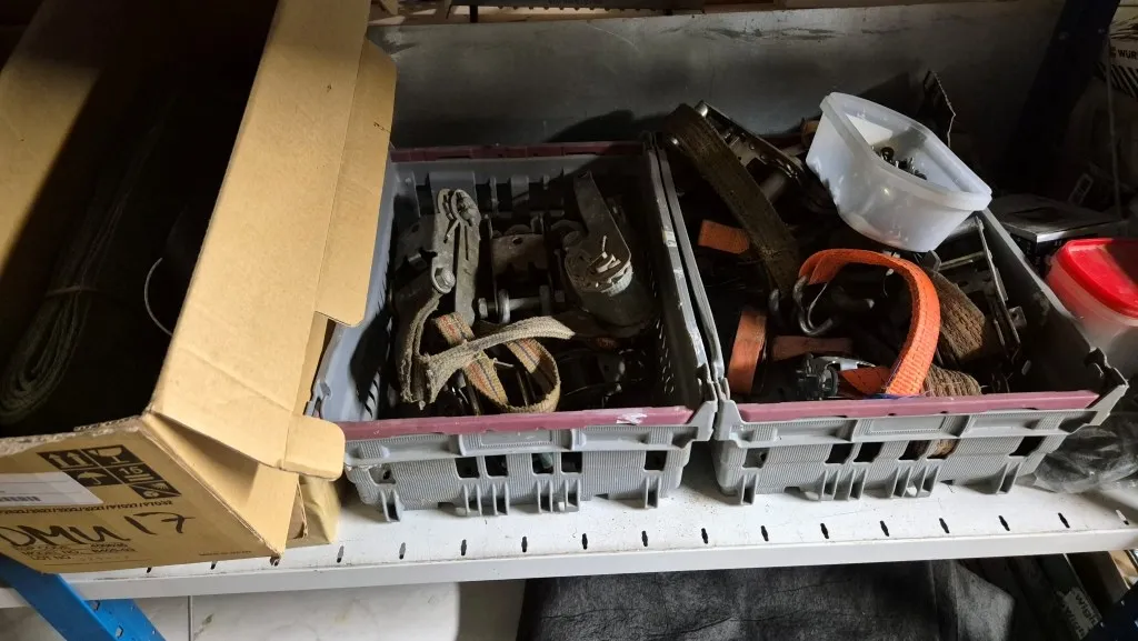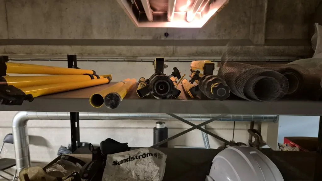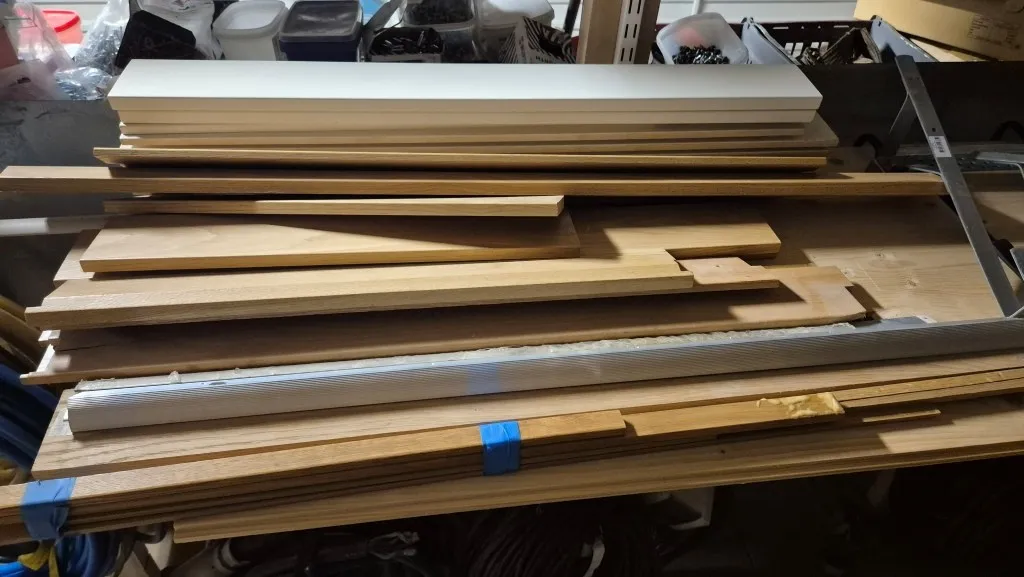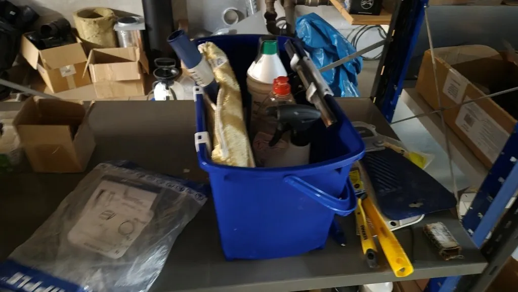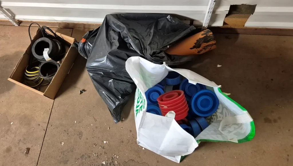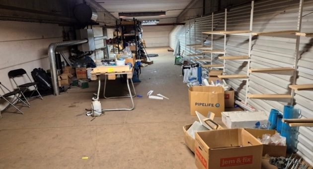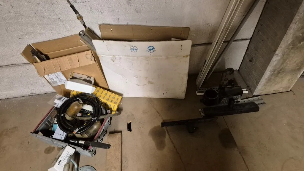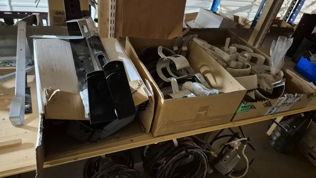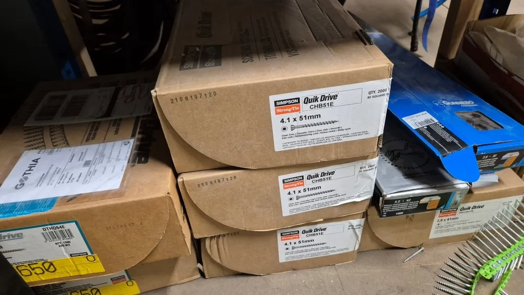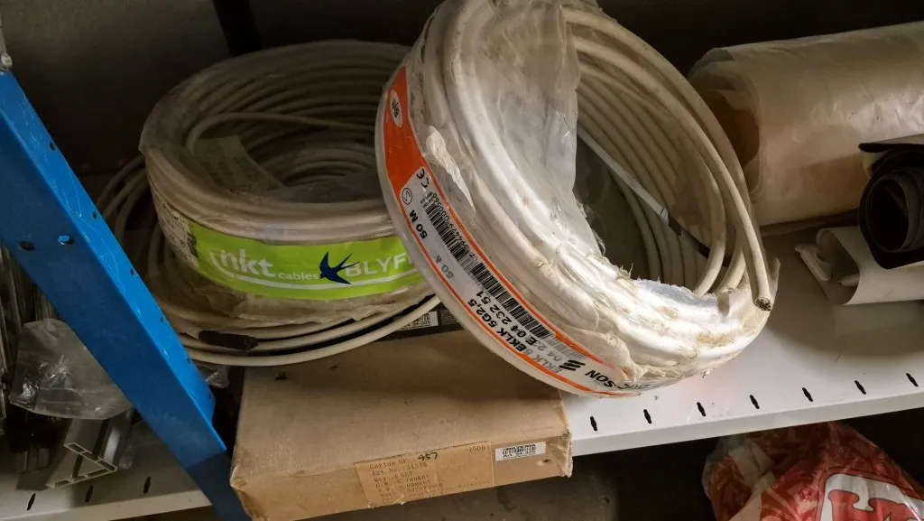 Byggmaterial, skruv, ventilationsdelar, avloppsdelar, el-material med mera.