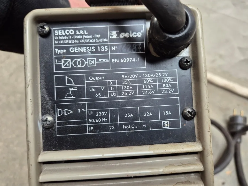 Invertersvets SelcoModell: Genesis 135Anmärkning: Ej funktionstestad men startar upp, inga kablar ingår
