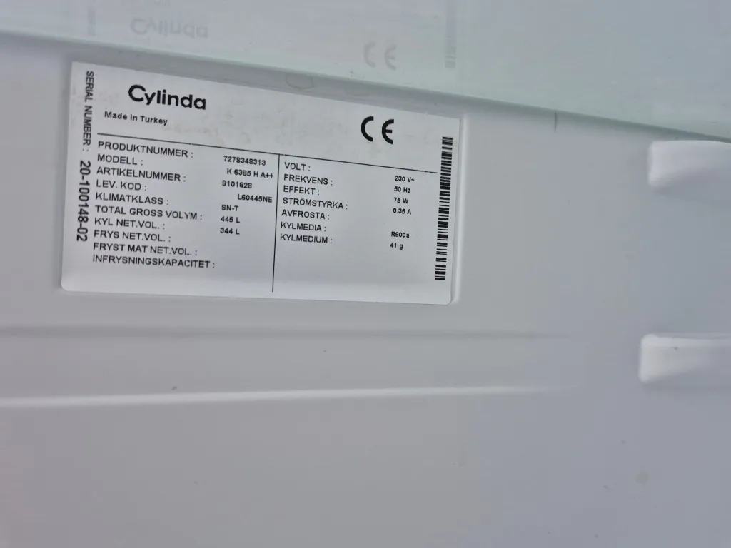 Kyl CylindaModell: K6385H A++Mått: 60x62x184cmAnmärkning: Ej funktionstestat