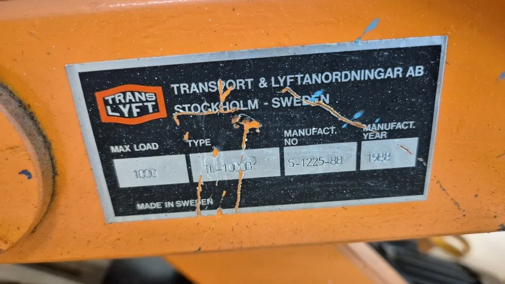 22171. LYFTBORD TRANSLYFT 1000KG Rep.objekt