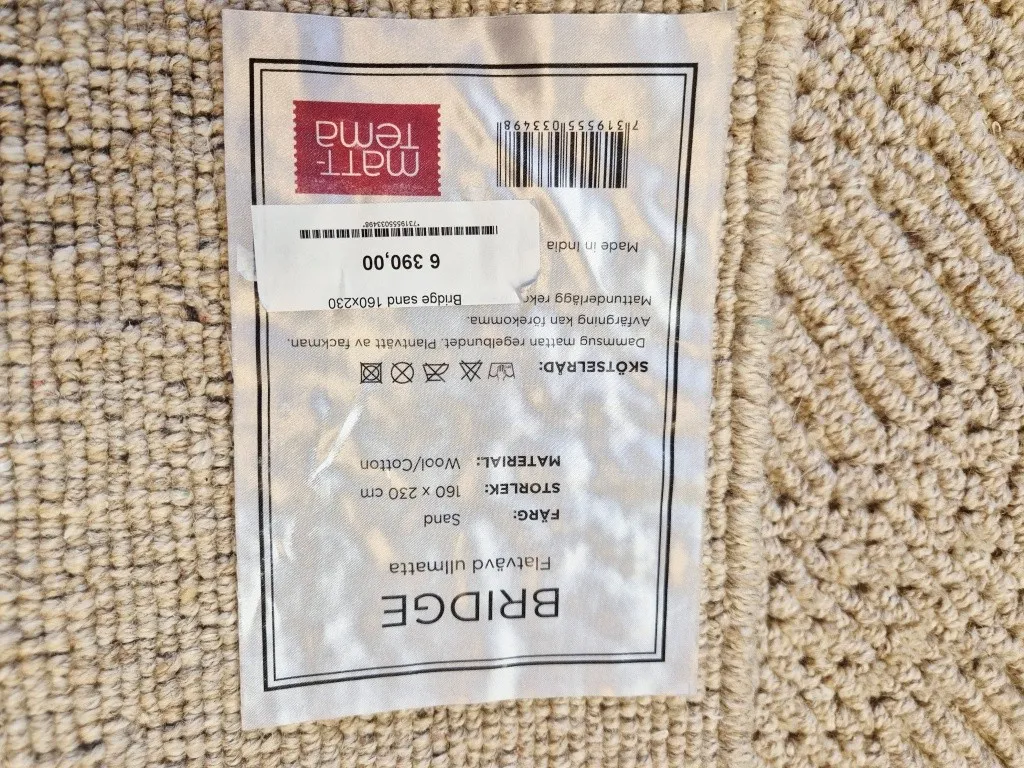 26088. MATTA ULL/BOMULL BRIDGE 160X230CM SAND