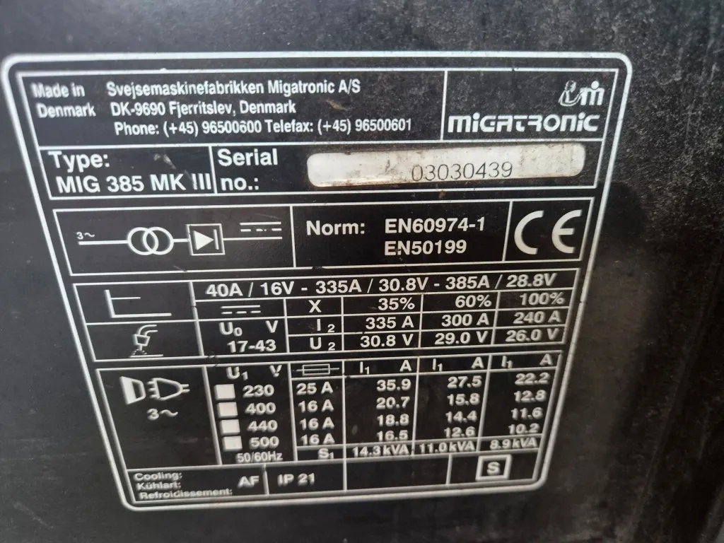 Migsvets MigatronicModell: MWF8 Mig 385Anmärkning: Ej funktionstestad
