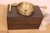 Inkl. vägghängd kommod med 2 lådor, stenskiva, tvättställsskål och blandare i mässing.