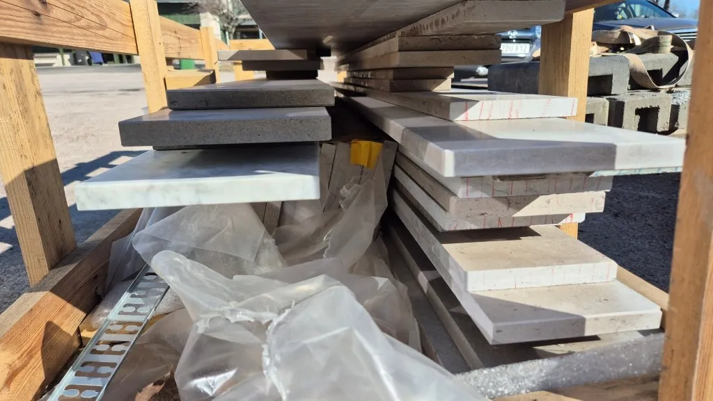 26455. PARTI MED FÖNSTERBÄNKAR I STEN CA 40ST