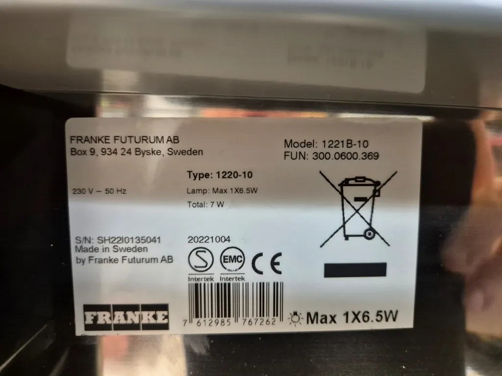 24159. ROSTFRI FLÄKTKÅPA FRANKE 60CM