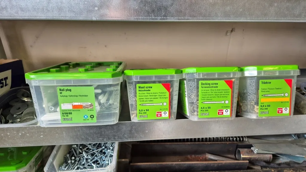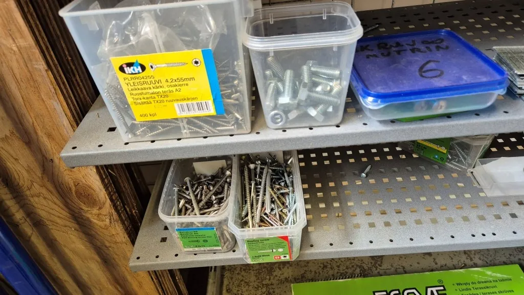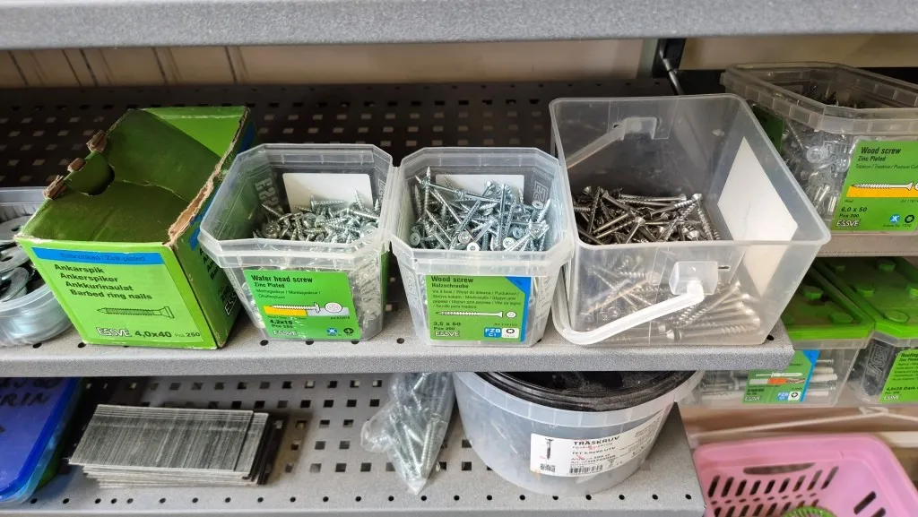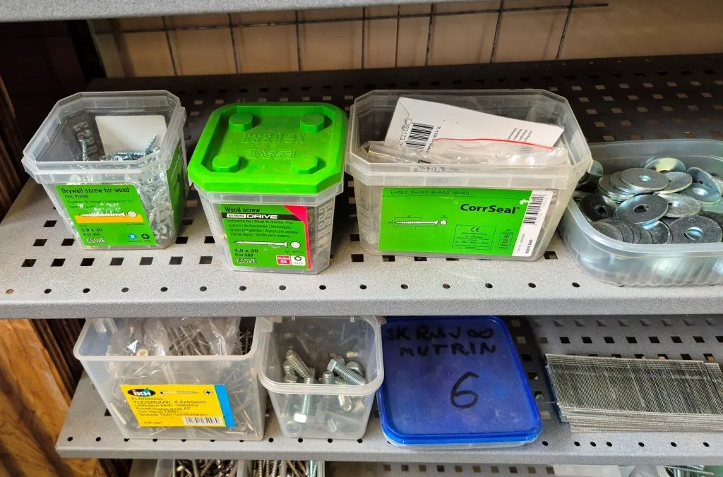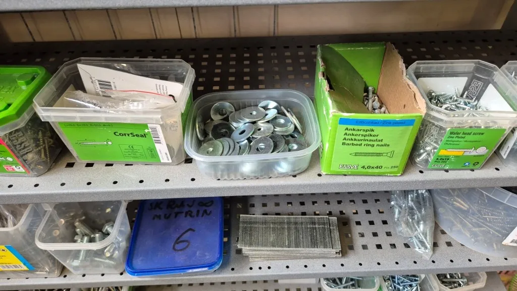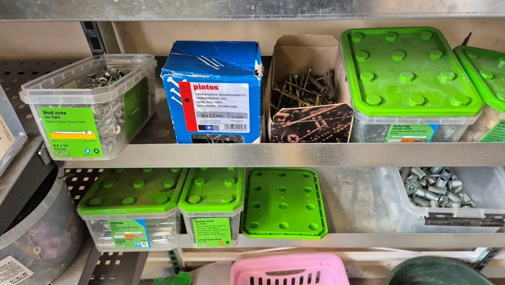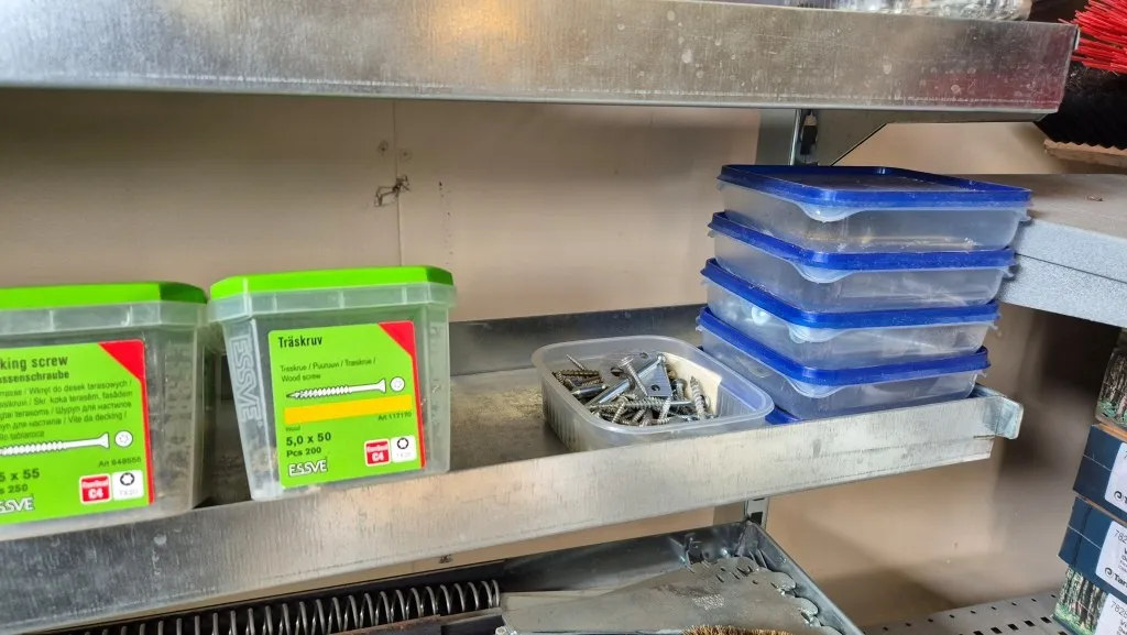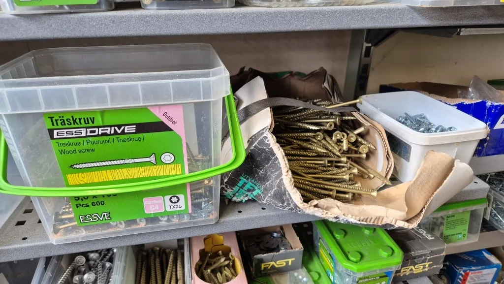 Skruv m.m. i hylla