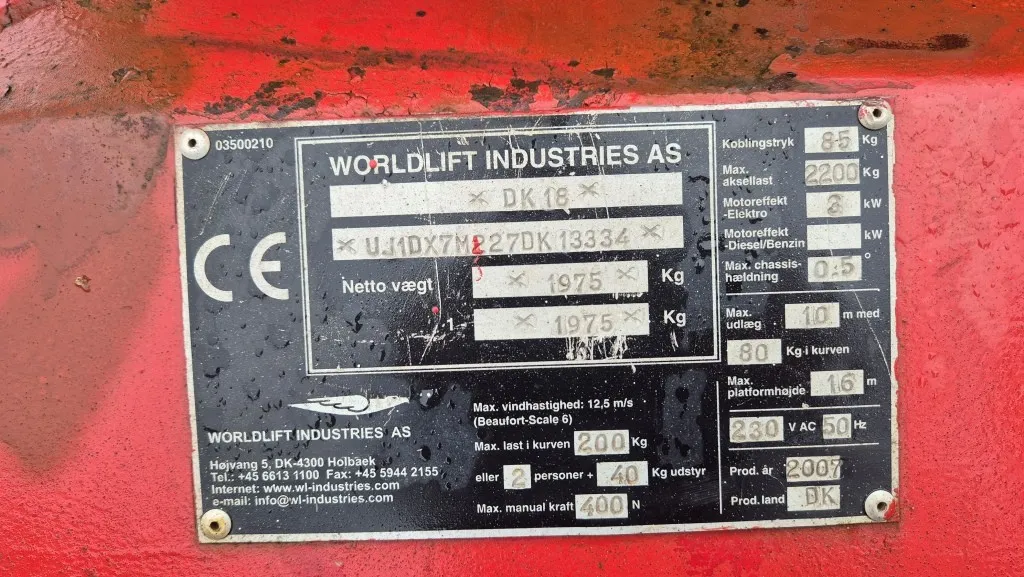 Max arbetshöjd: 18 meter
