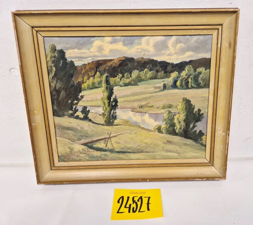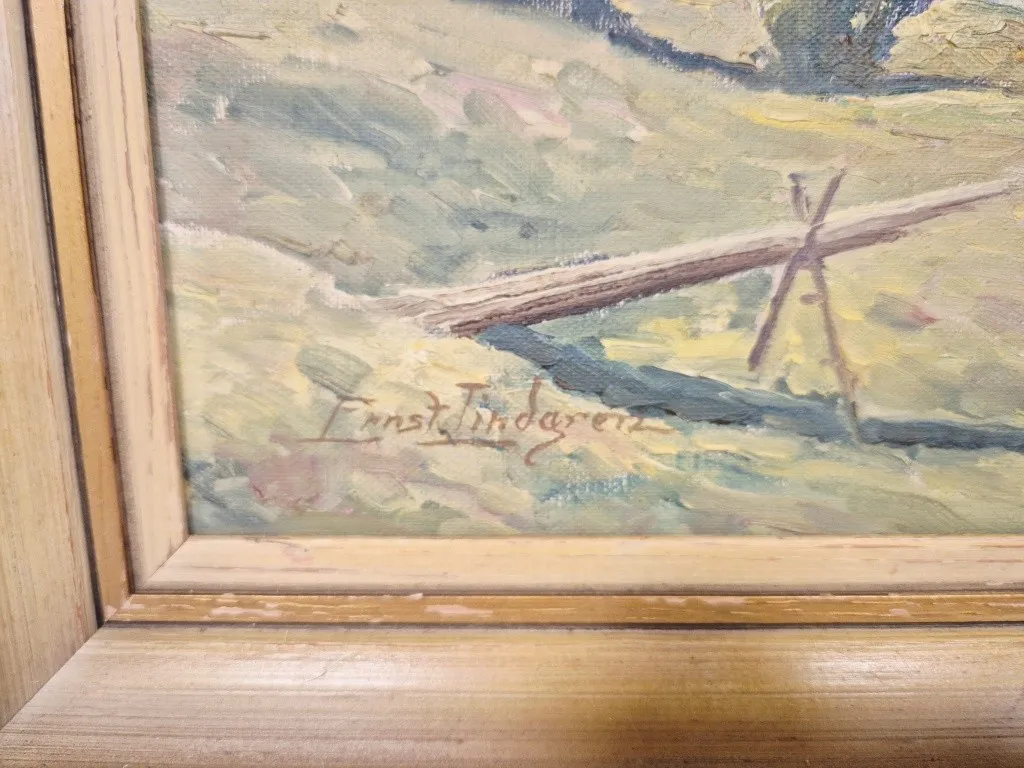 24527. TAVLA - SIGNERAD ERNST LINDGREN, OLJA PÅ PANNÅ