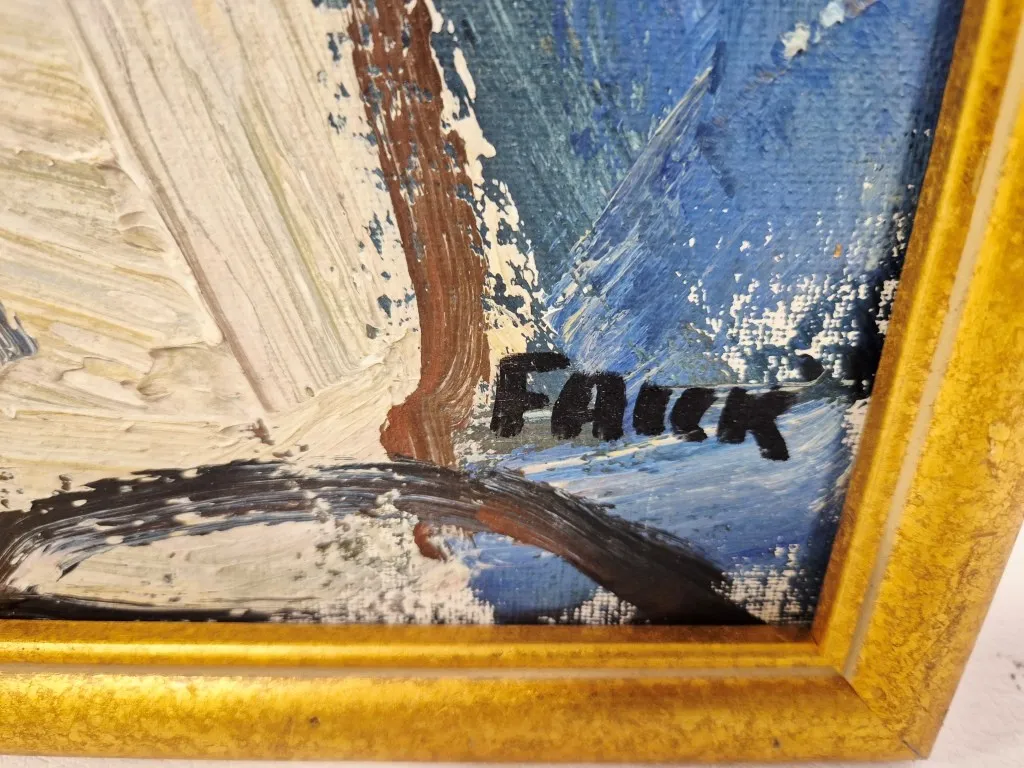24509. TAVLA - SIGNERAD FALCK, OLJA PÅ DUK