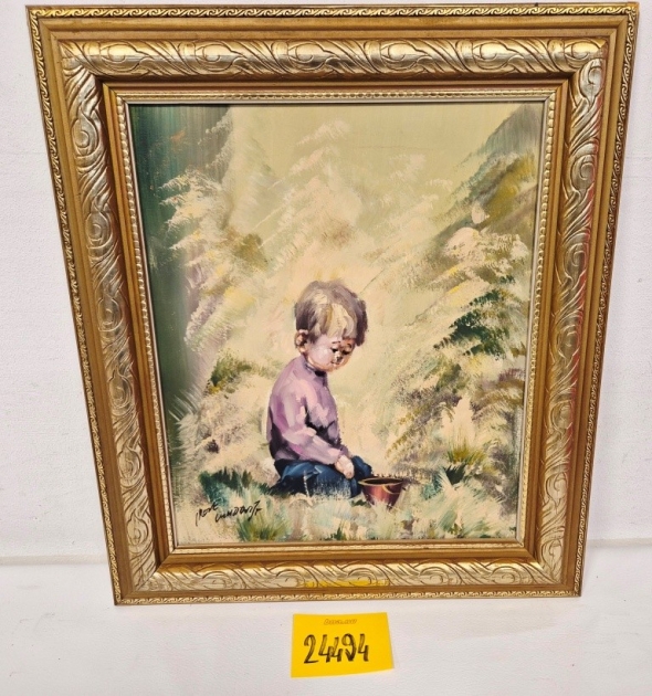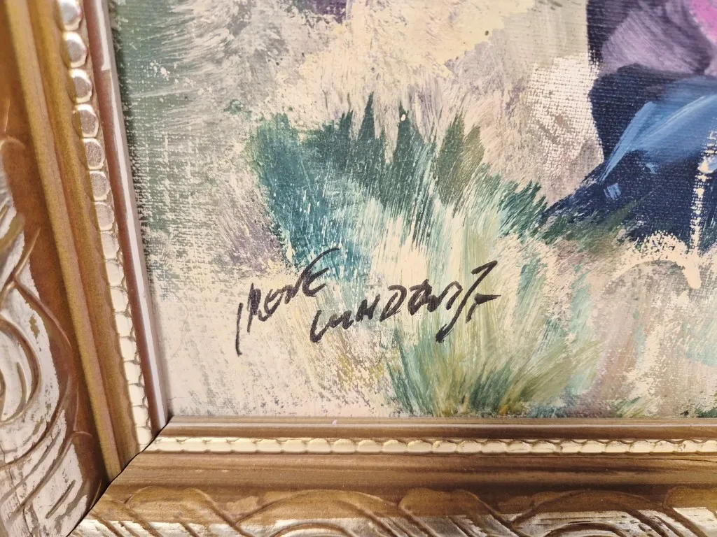 24494. TAVLA - SIGNERAD, OLJA PÅ DUK