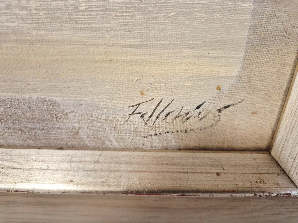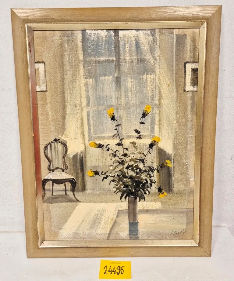 24495. TAVLA - SIGNERAD, OLJA PÅ DUK