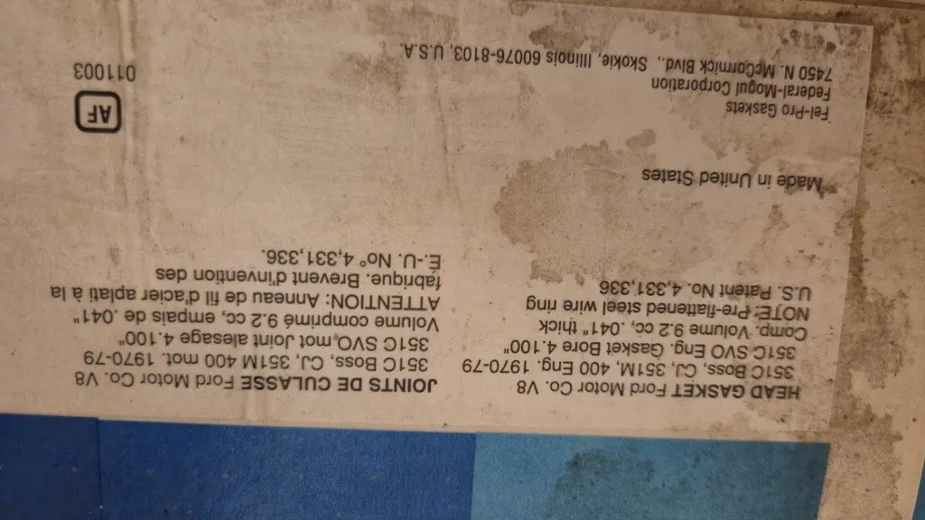 23697. TOPPLOCKSPACKNINGAR FORD 351