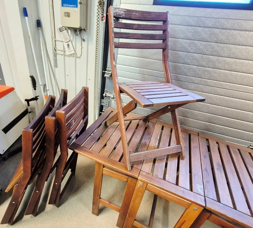 Möblerna känns rangliga, kan behöva att skruvas till.
