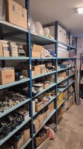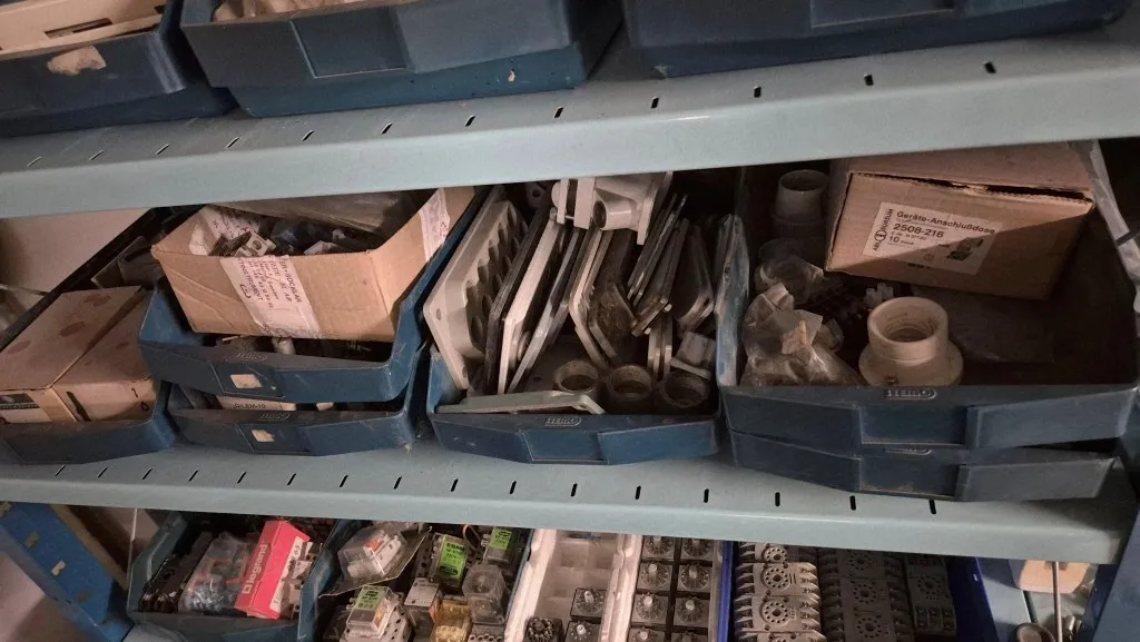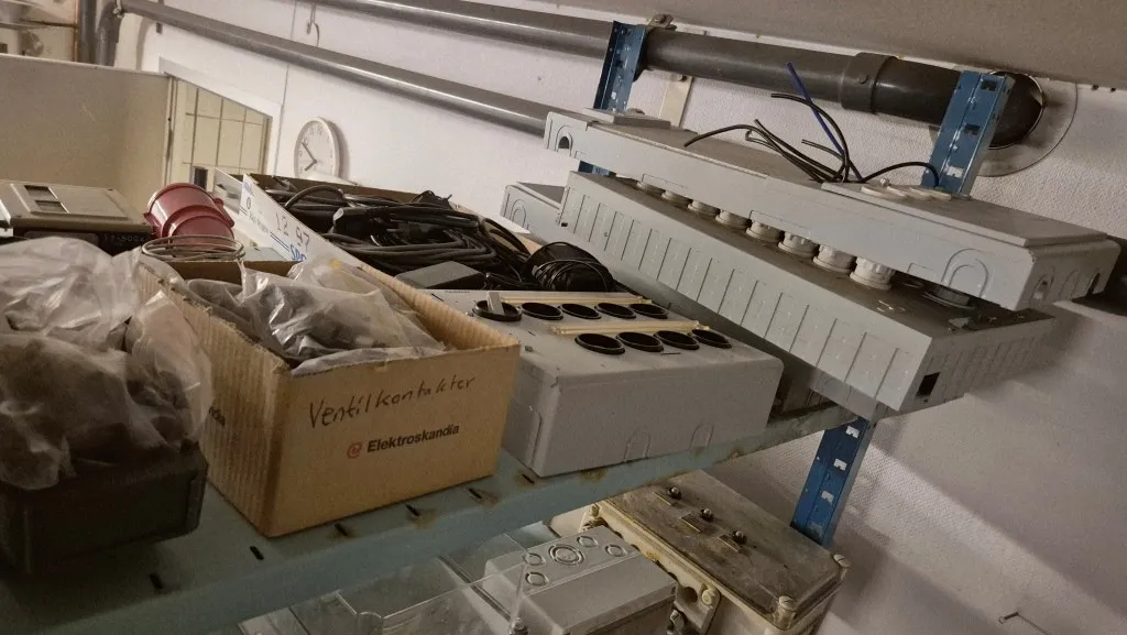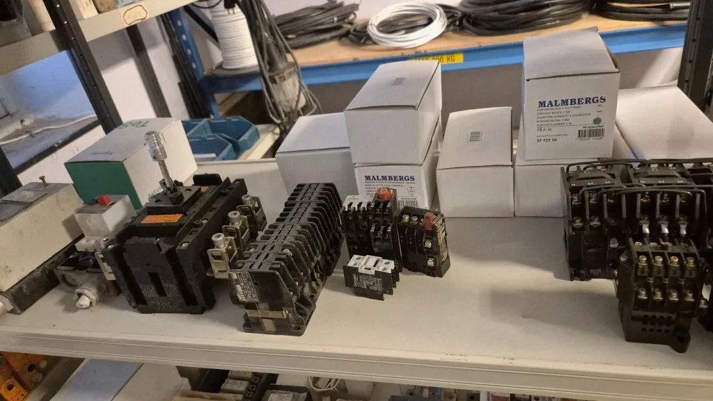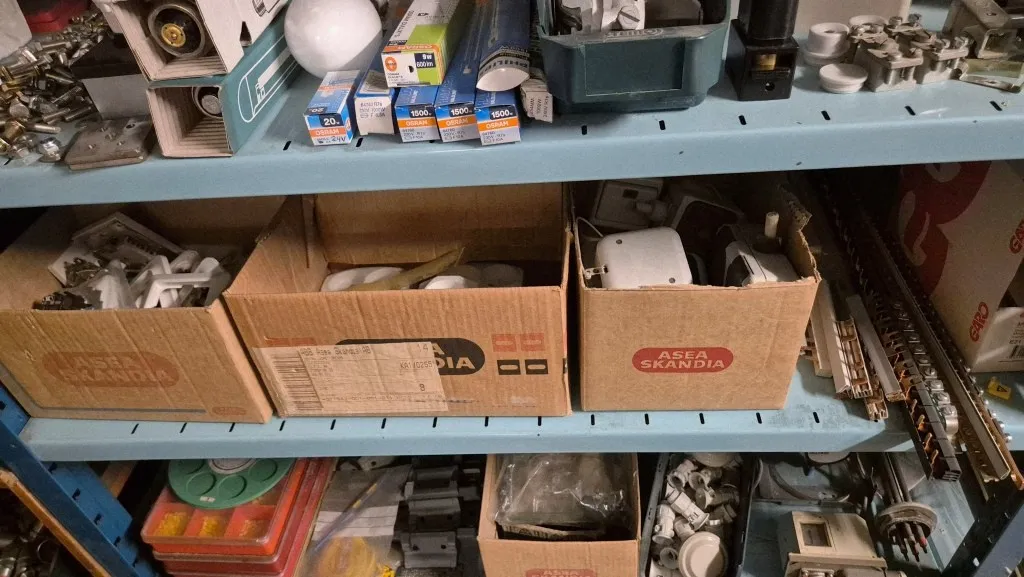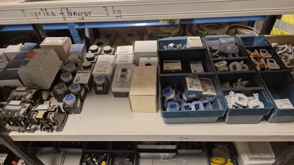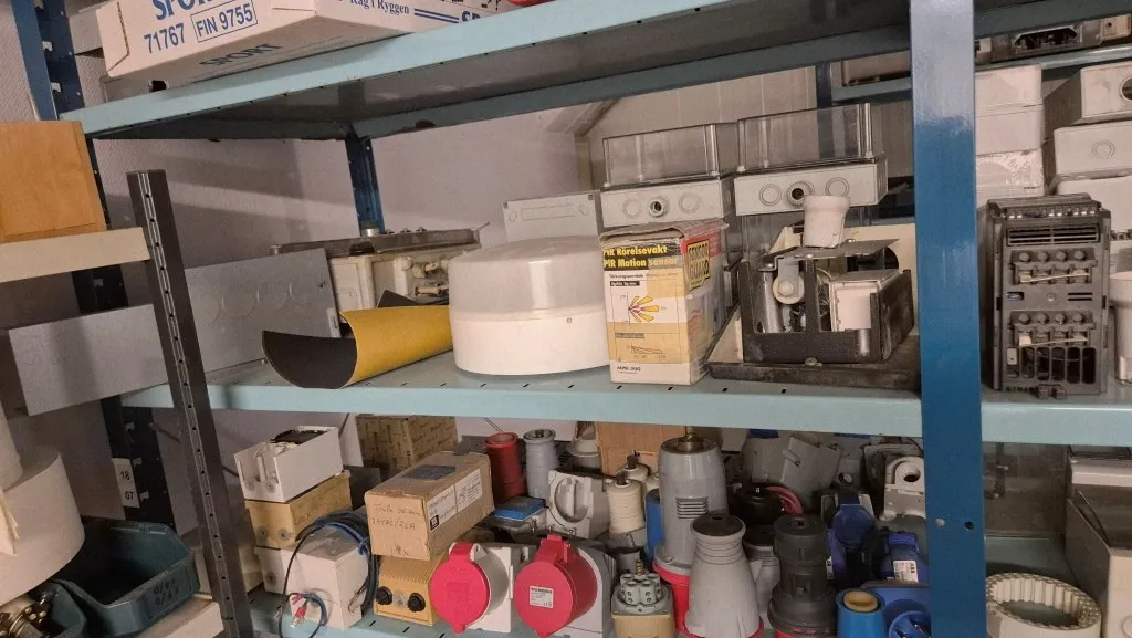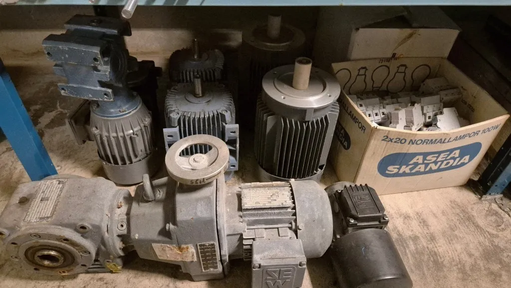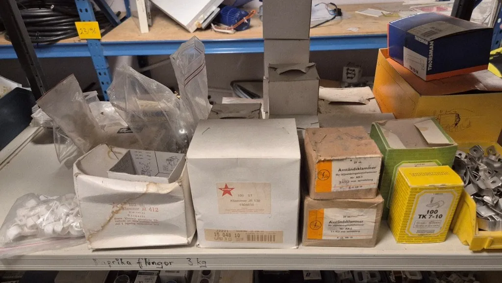 Varulager elmaterial, el-motorer, klammer mm