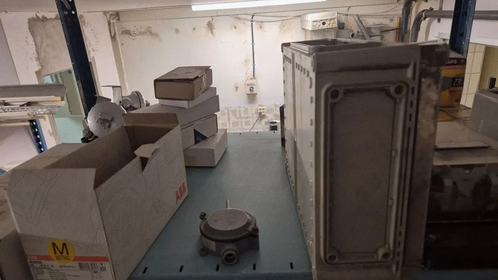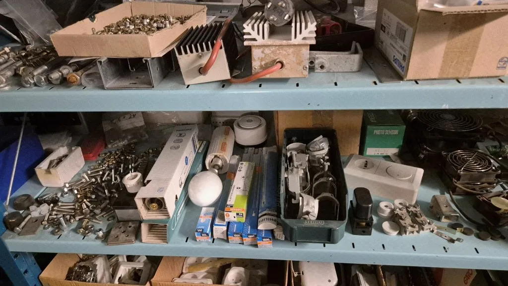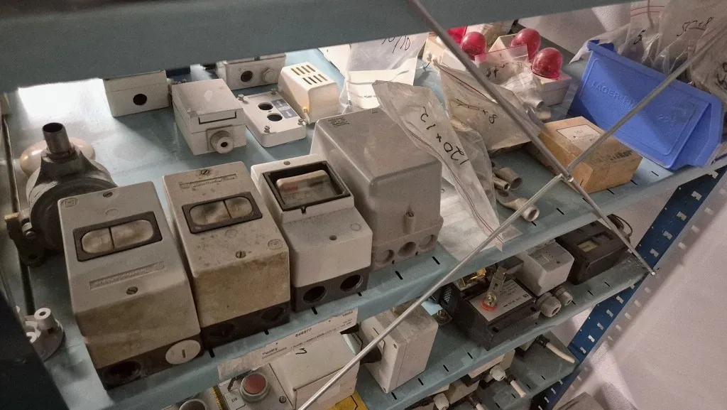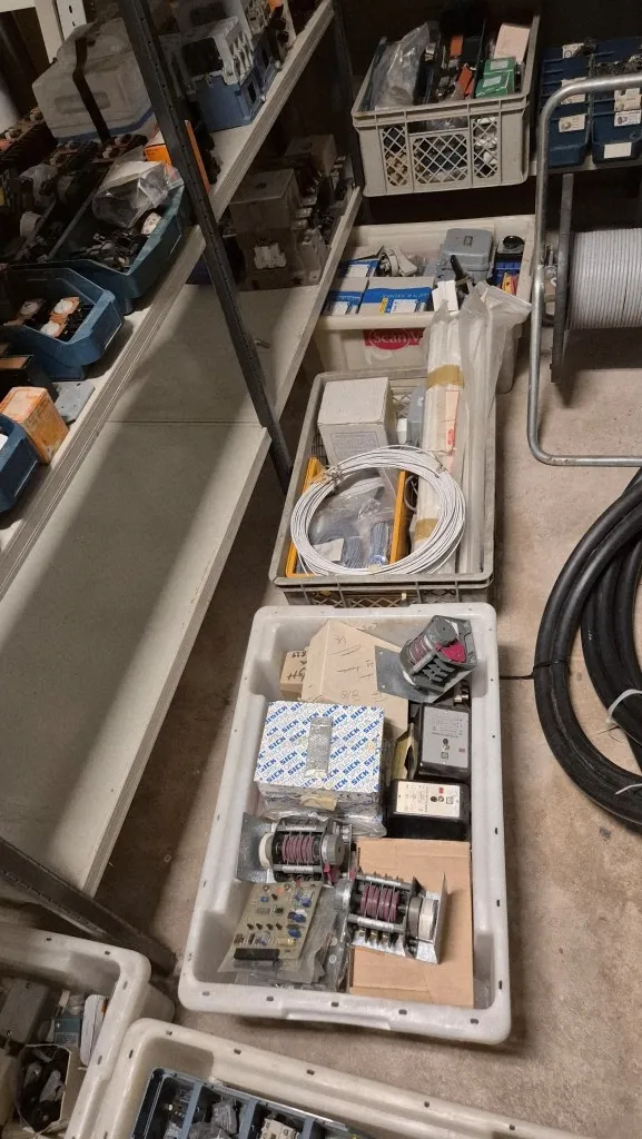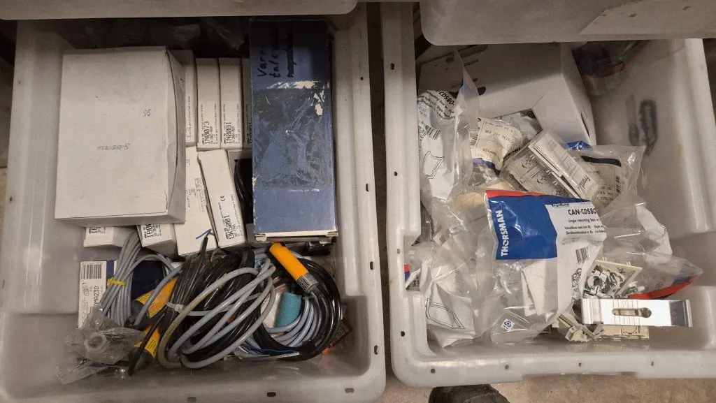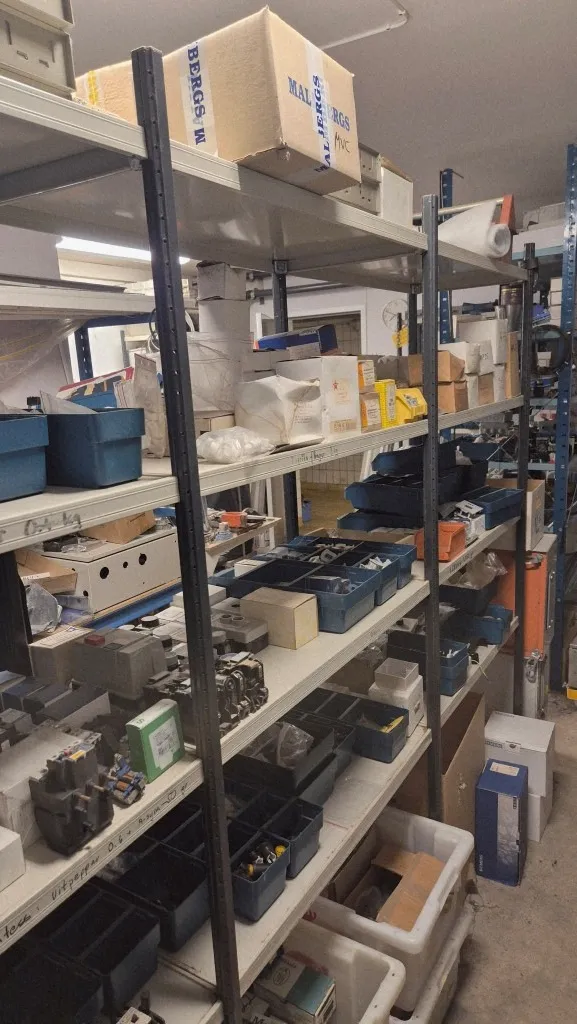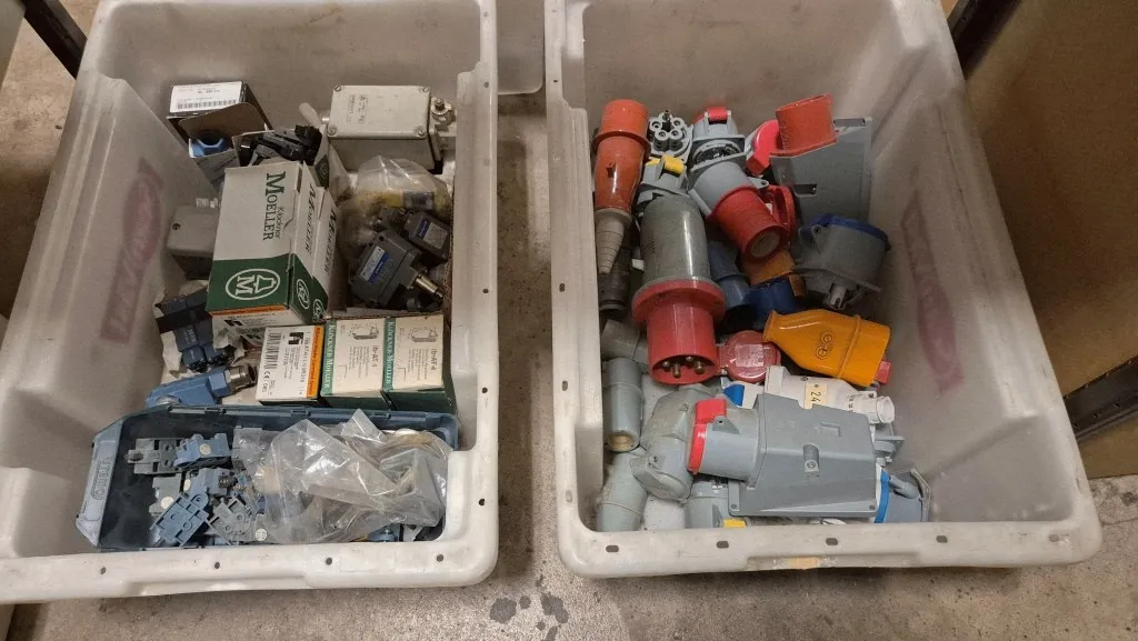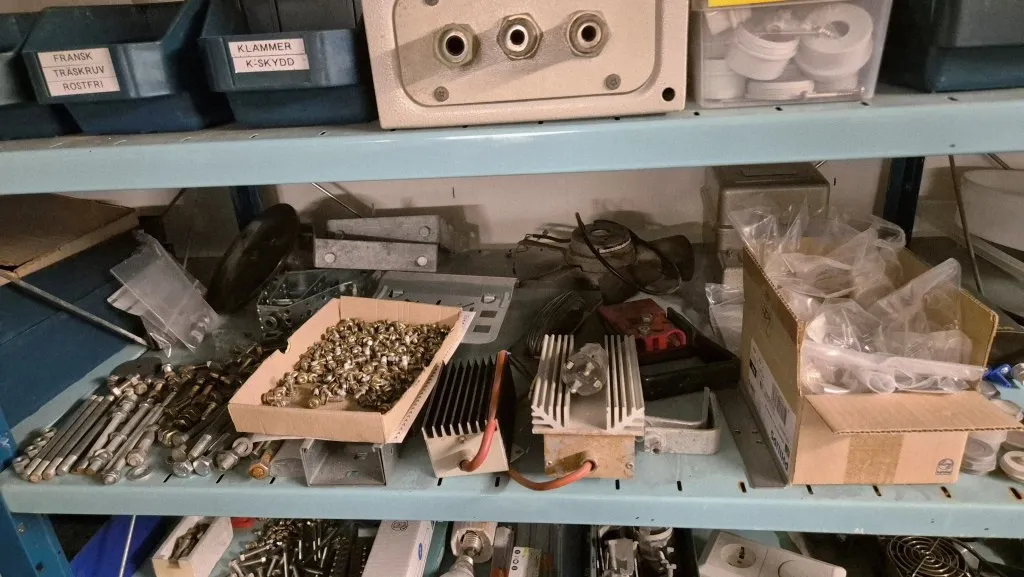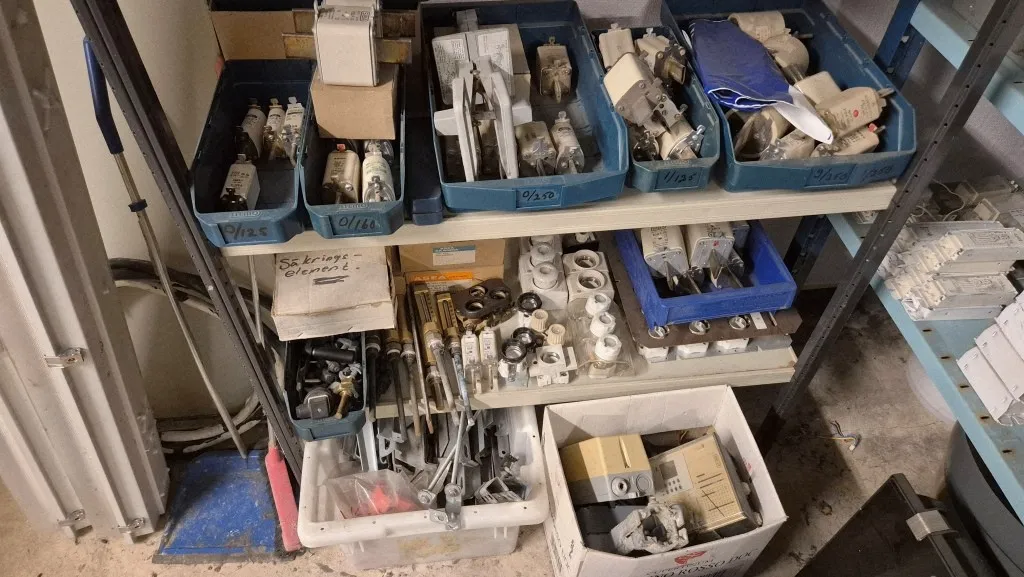 Varulager elmaterial, el-motorer, klammer mm