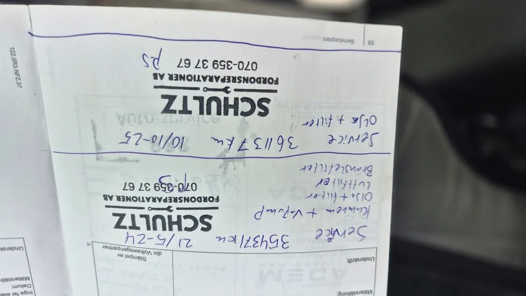 - Service med kamrem/vattenpumpsbyte utförd 2024 vid 35437 mil