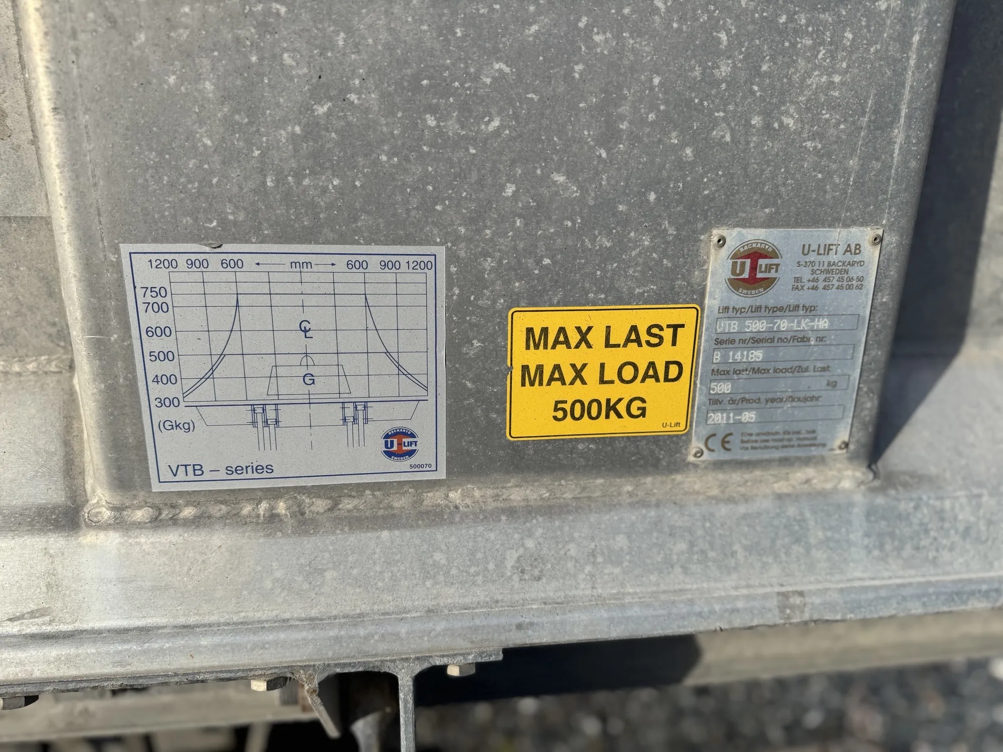 - Bakgavellyft 500kg
