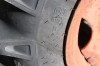 Bakdäck i bra skick, framdäck med torrsprickor.